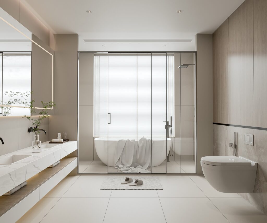 - Sử dụng vách kính ngăn khu vực tắm: Giúp không gian khô ráo, sạch sẽ hơn.
