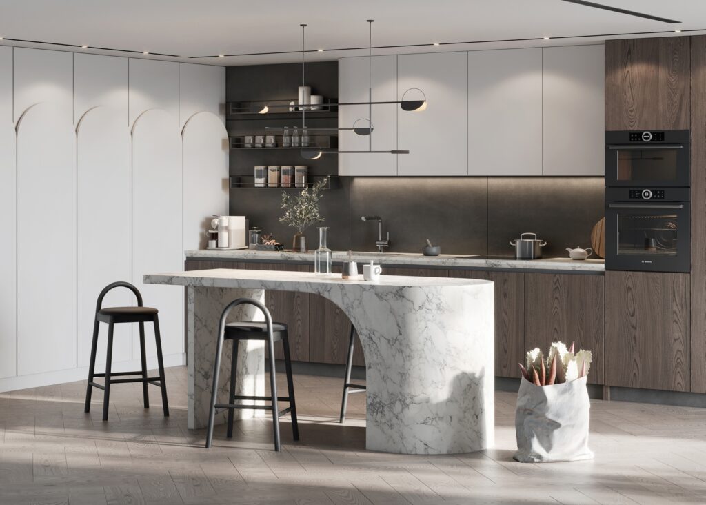 - Phong cách hiện đại: Đường nét tối giản, màu sắc trung tính, thiết bị bếp thông minh.